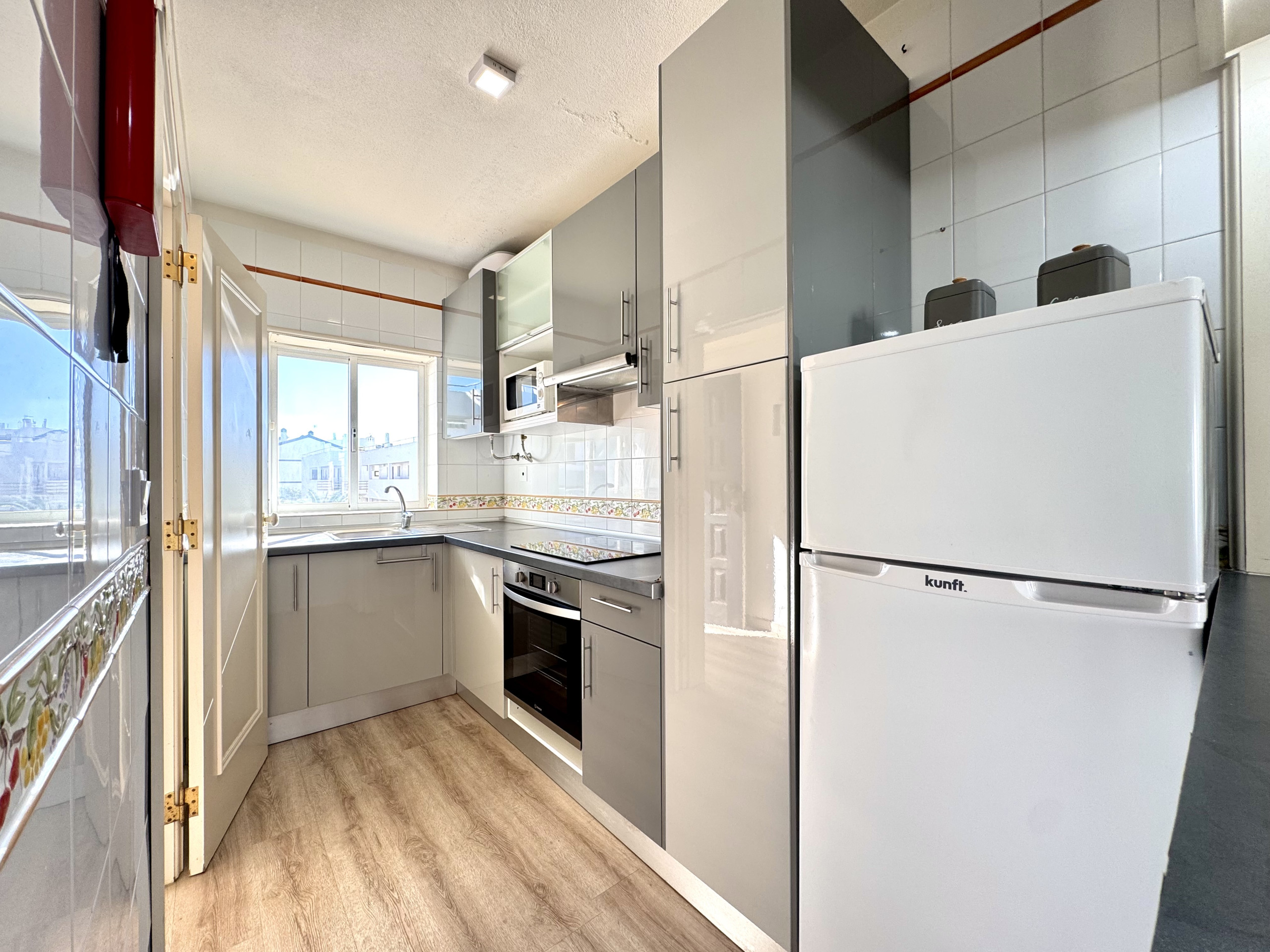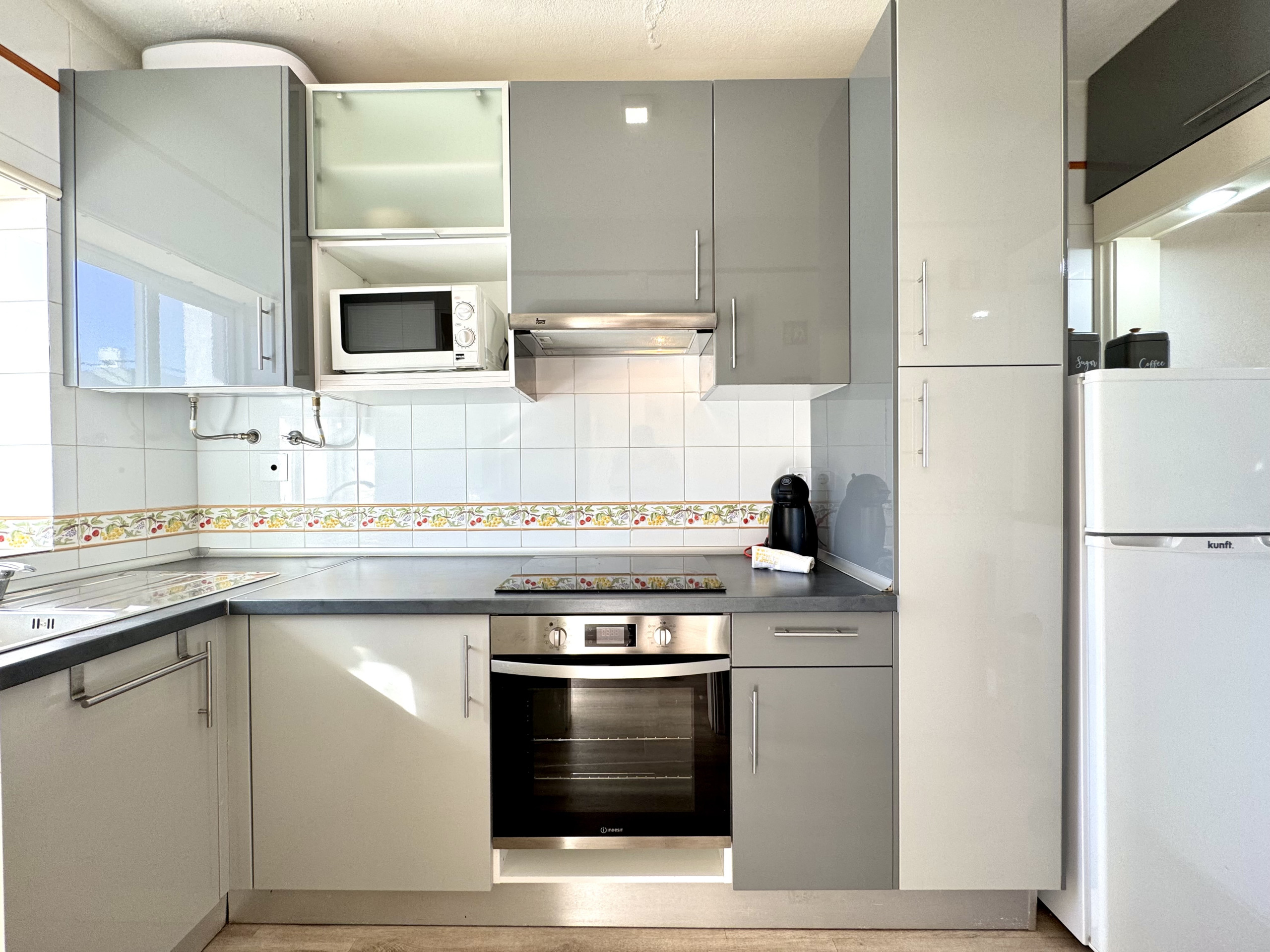 The fully equipped kitchen offers convenience for preparing meals during your stay. The living area is inviting, perfect for leisure and socialising moments.