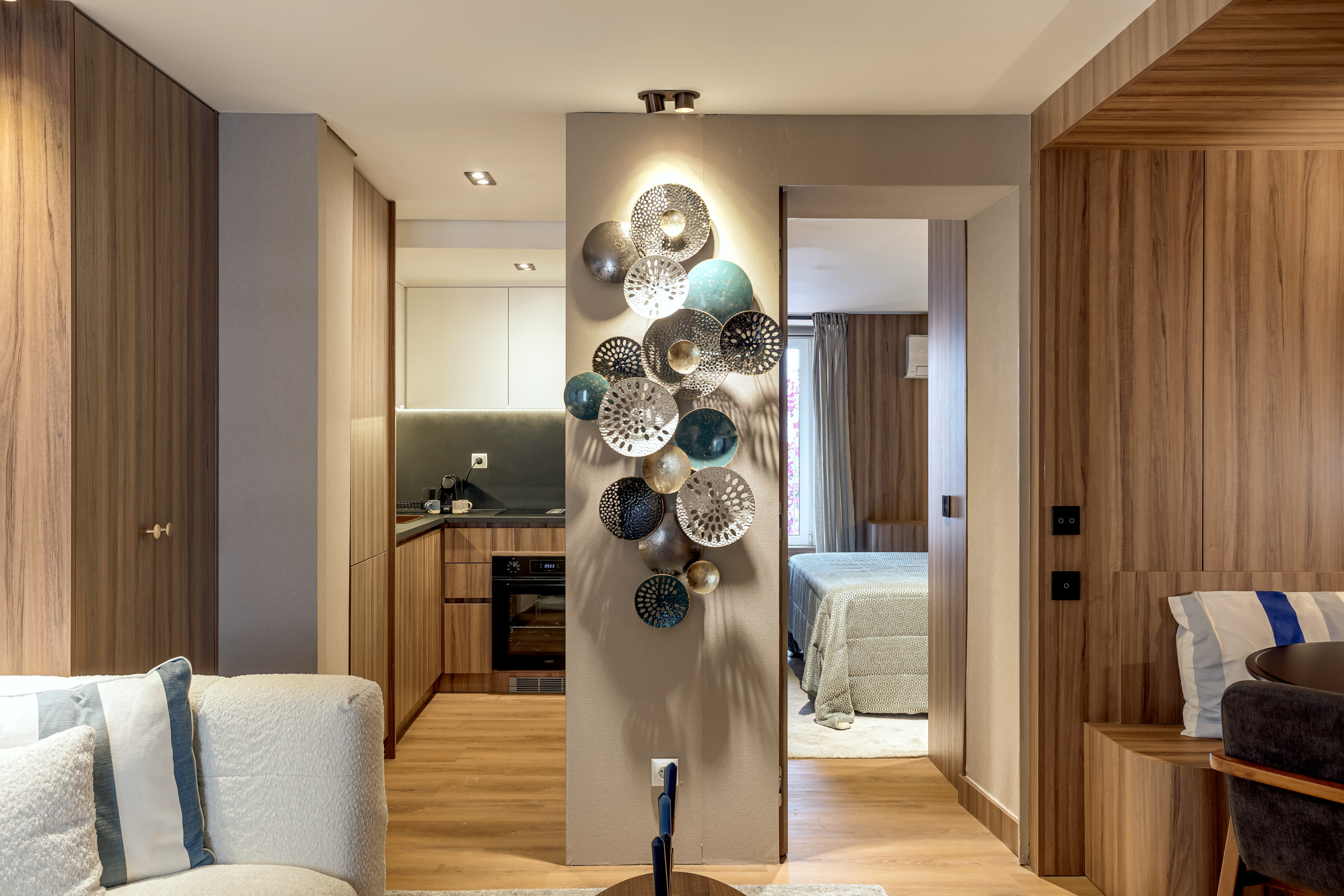 This cosy 35m² apartment offers a bedroom with a comfortable double bed, ideal for resting after a day of exploring the city. The brightness and modern design create a relaxing and functional environment.