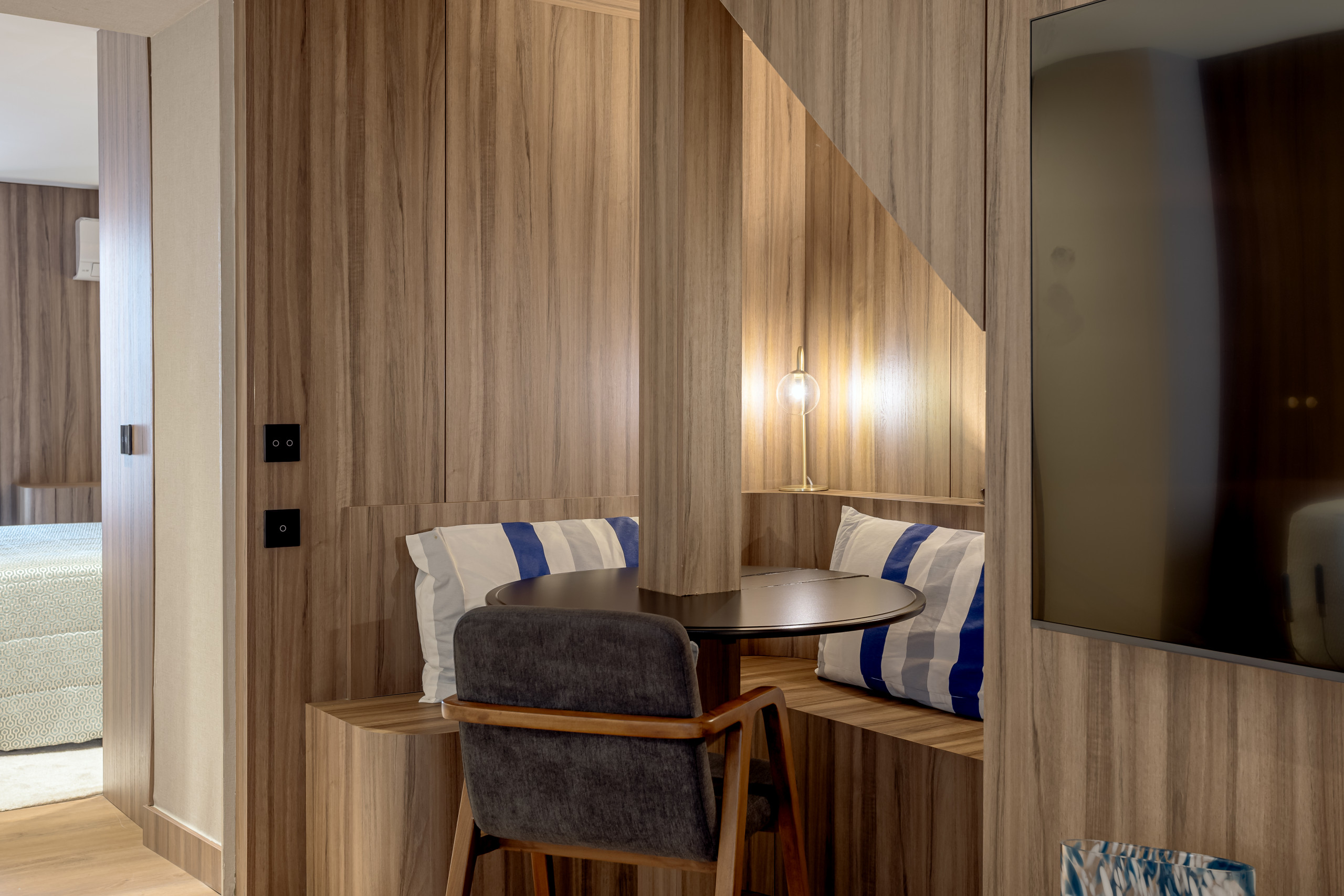 One of the highlights is the small counter that offers a moment of tranquillity to enjoy breakfast or a glass of wine, observing the city's movement.