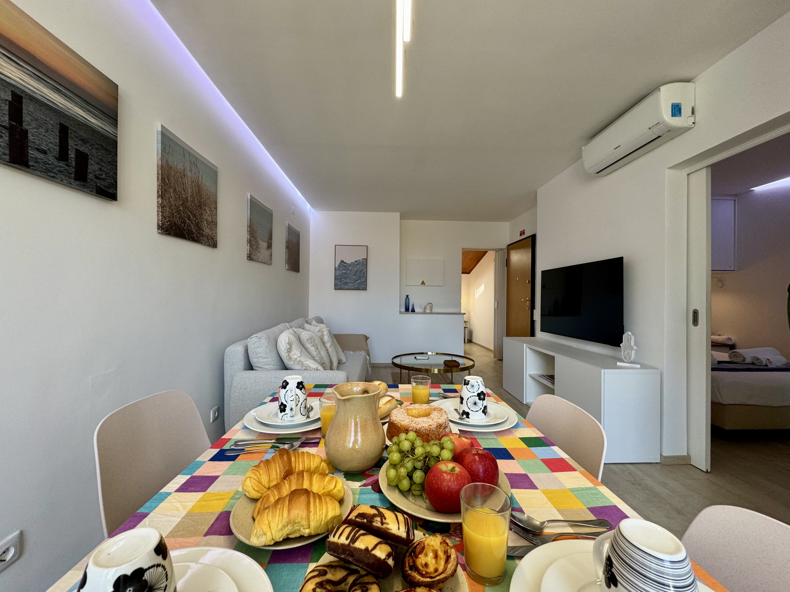 The space includes a bright living room, fully equipped kitchen, two comfortable bedrooms (one with a double bed and another with two single beds or bunk beds, as you prefer), and a modern bathroom.