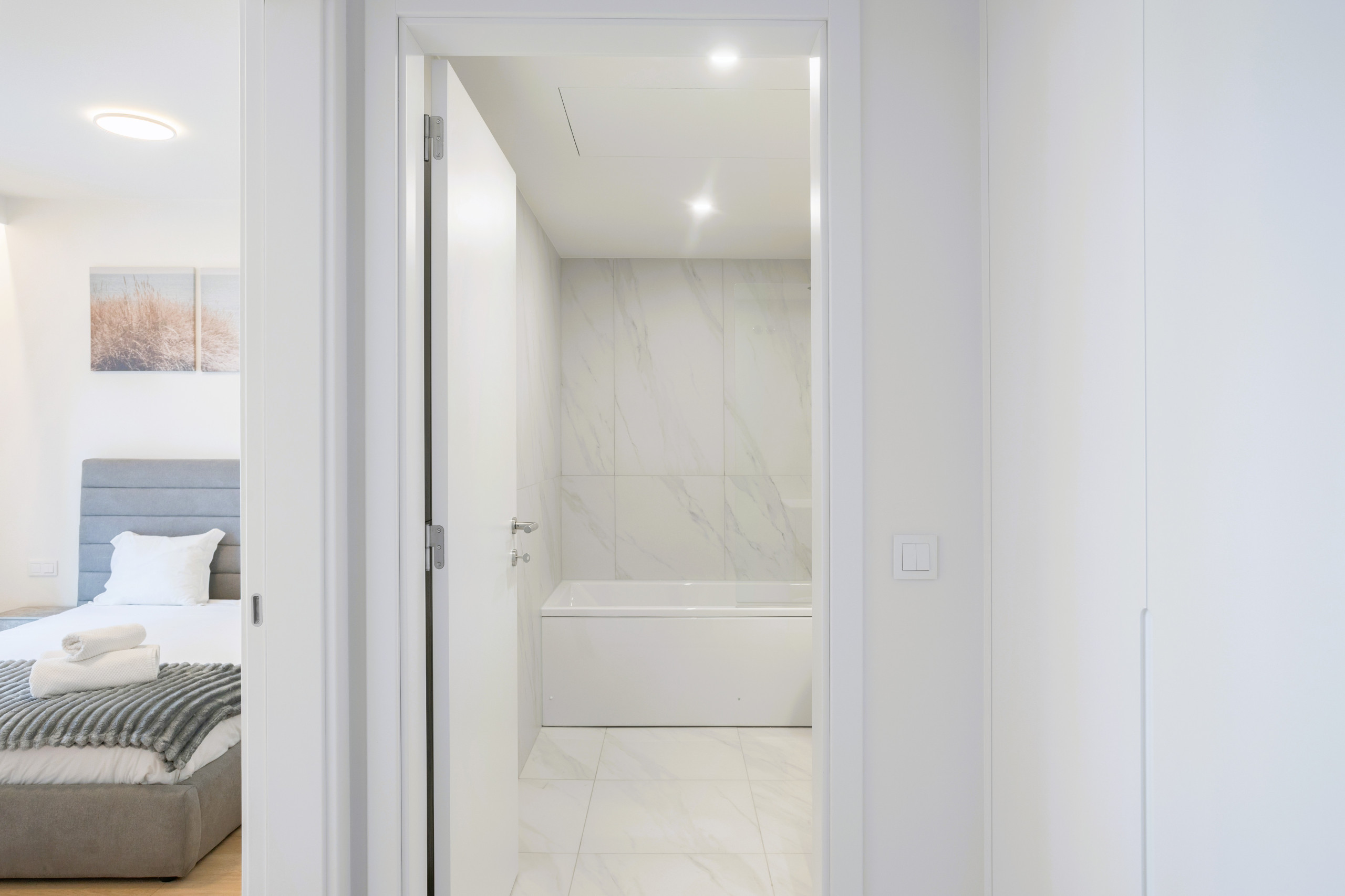 L'appartement dispose de la climatisation dans toute la zone, du chauffage électrique et du Wi-Fi pour maintenir votre confort et votre connectivité. La salle de bain privative comprend une baignoire, parfaite pour se détendre après une journée d'exploration dans la ville. Un fer est également disponible pour garder vos vêtements impeccables.