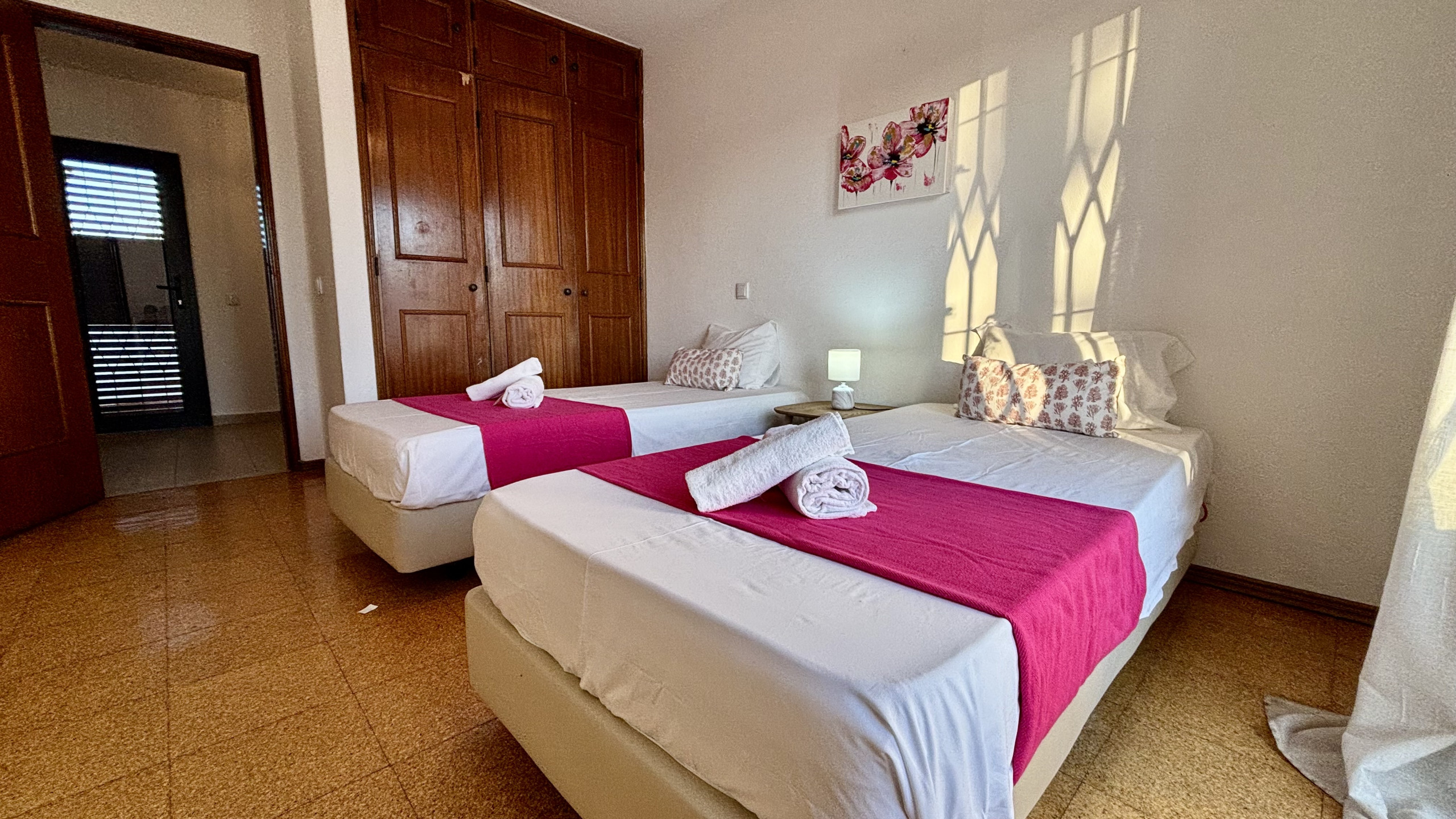 La maison dispose de trois chambres lumineuses et bien décorées, équipées de lits confortables et d'un grand espace de rangement, garantissant le repos et la confidentialité pour tous les invités.